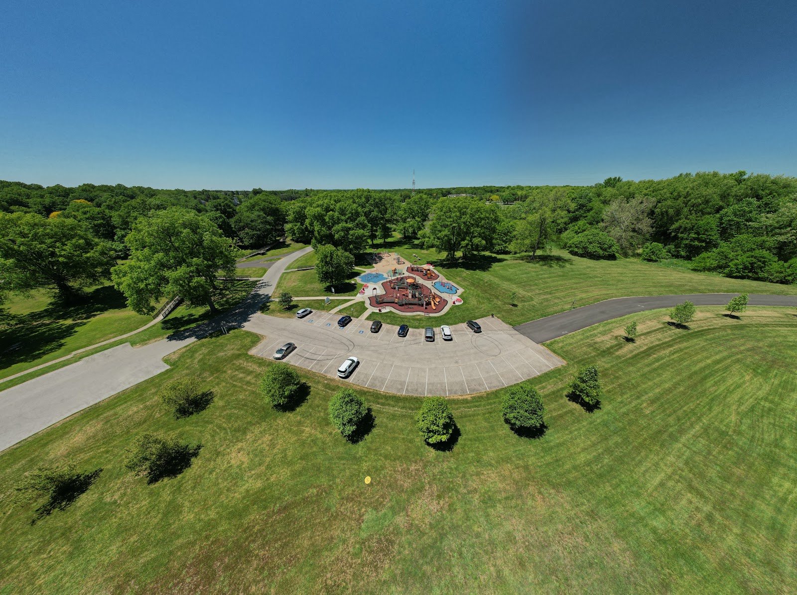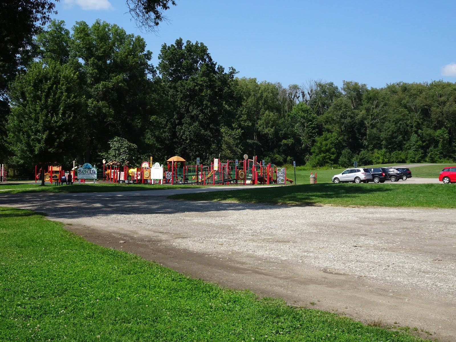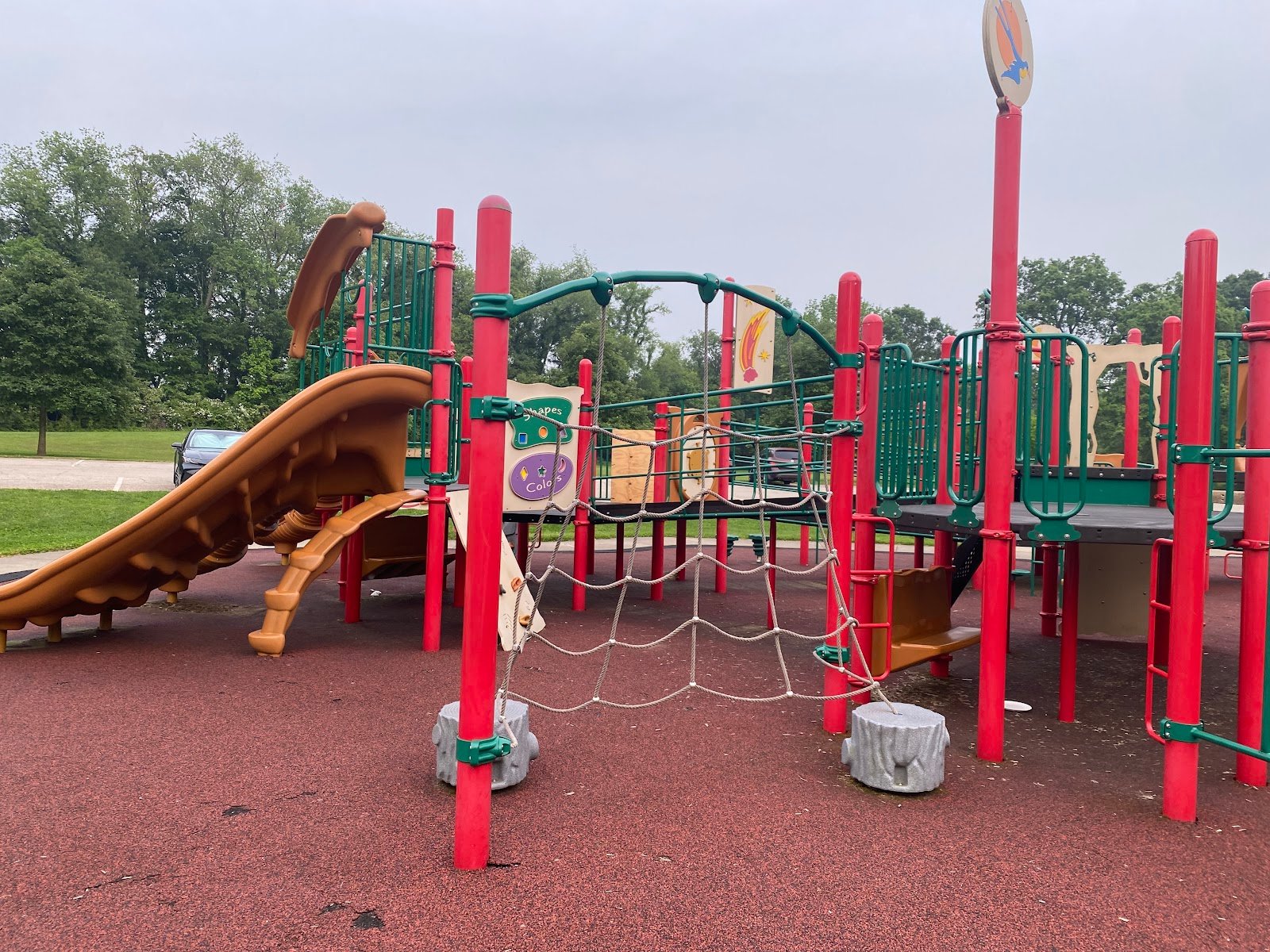 The playground is actually located near the middle of the park next to the restrooms and the pavilions. It is NOT located close to Stow road as Google Maps has it. So you won’t have to worry about your children playing close to a very busy road!