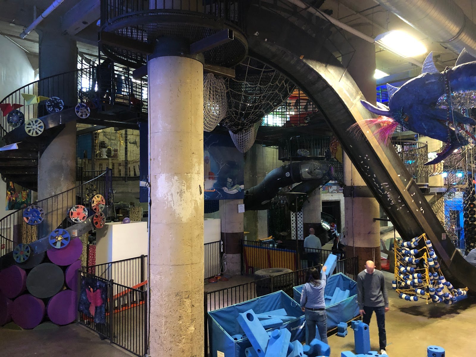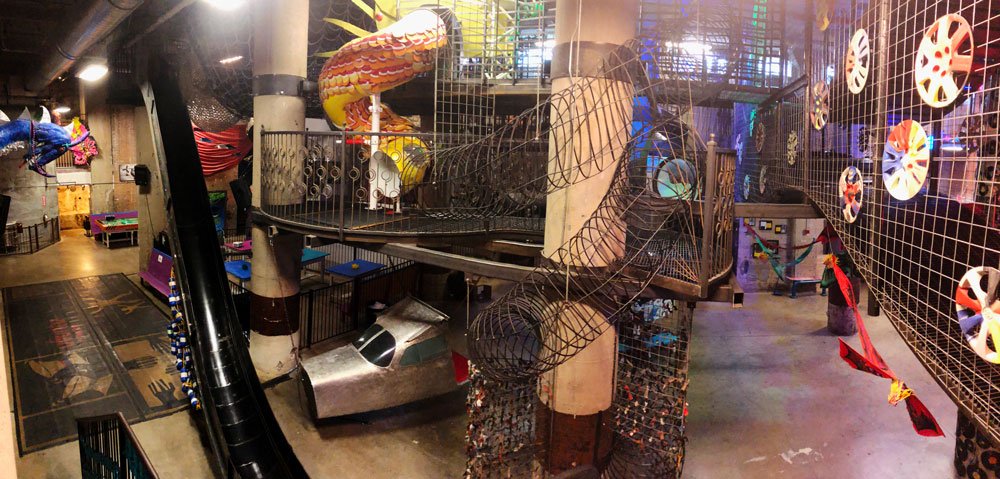 This is a jungle gym for those who can climb up, explore. They have tunnels throughout the venue. The staff was respectful. Events and adventures chose Thursday night bcz it’s 21+ only Adult night which includes 2 free drinks (wine, some beer). Thank you for having us.