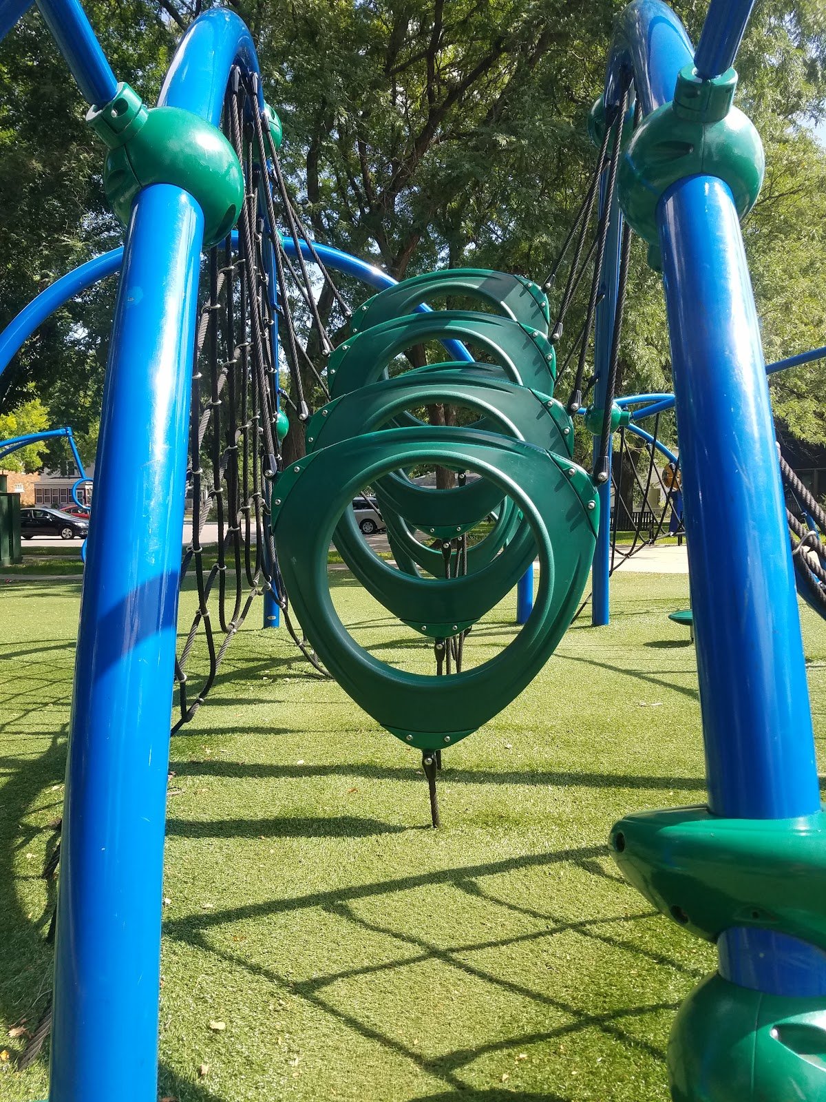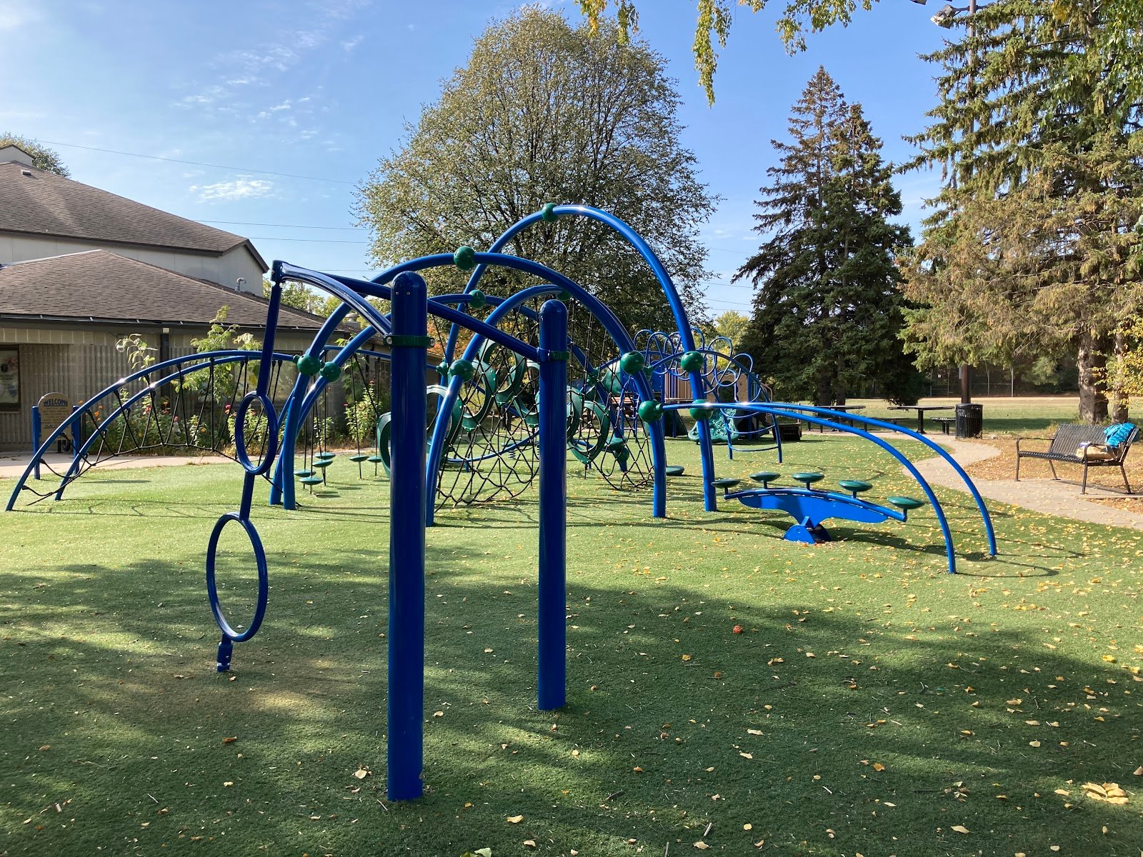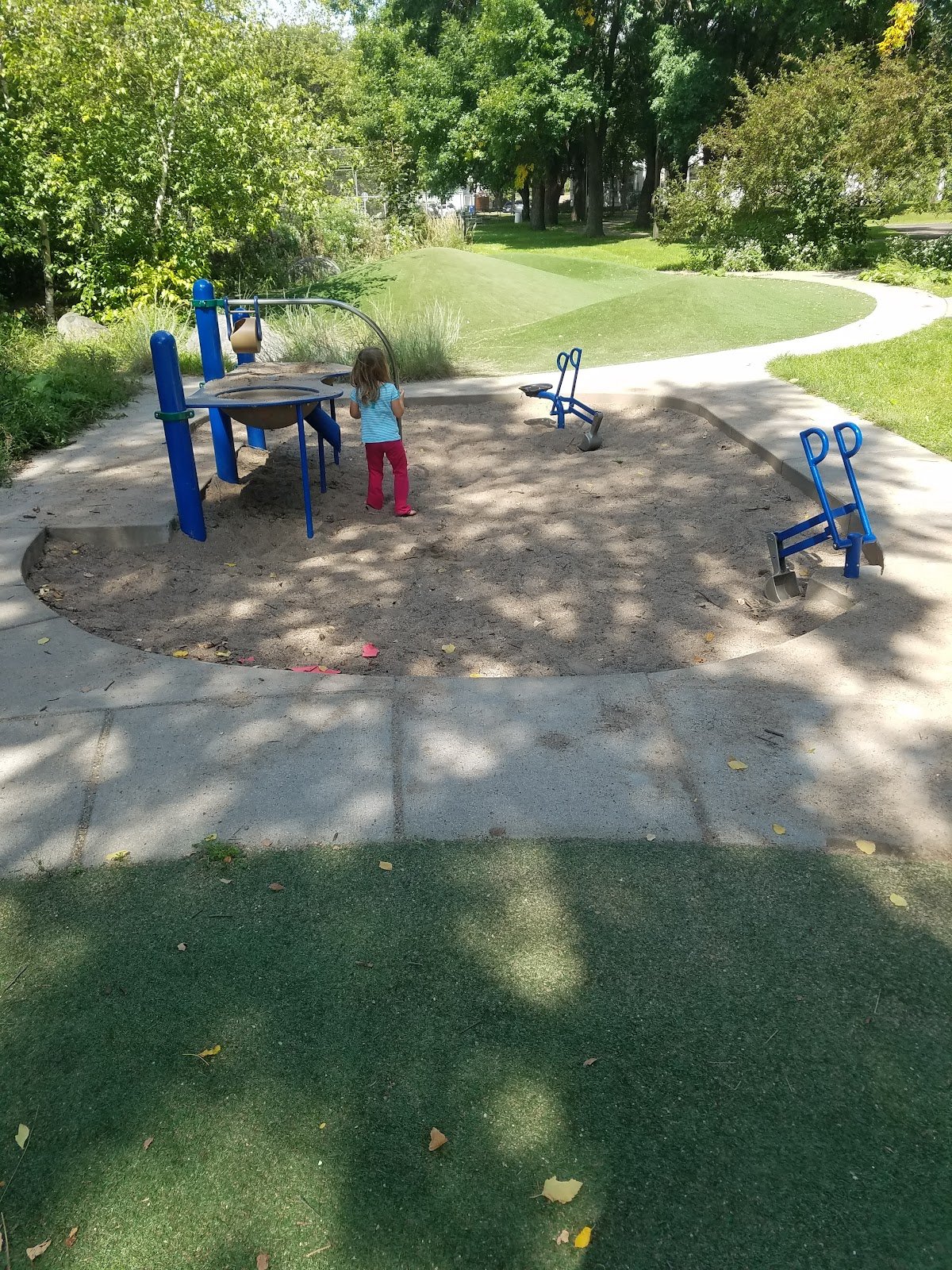 An awesome playground! Great for my 16 month old who is very active. They have a great playground for his age to 5 yrs and then for those older then 5 they have engaging ropes course like equipment. Next to the playground they also have a small and pit and a unique tiny area of astro turf.