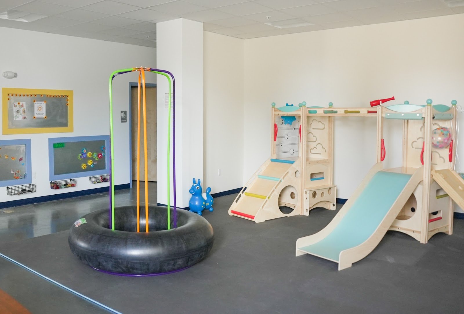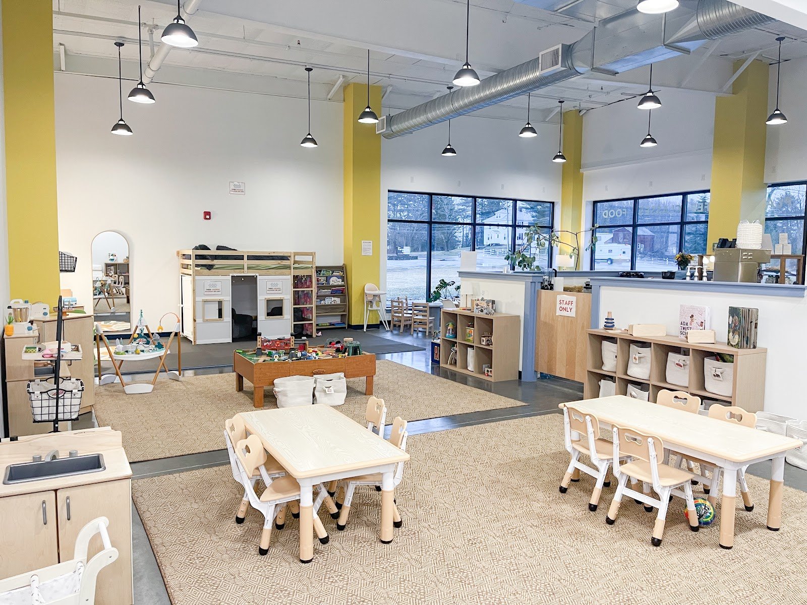I only got photos of a few activities but they have a lot of books, a cozy nap/reading nook under a toddler bunk bed, lots of baby dolls and accessories, a train table, cars, a little doll house, magnet wall, climbing things, slide, and MUCH more in some shelves we didn’t even get to. Nice staff and very clean!