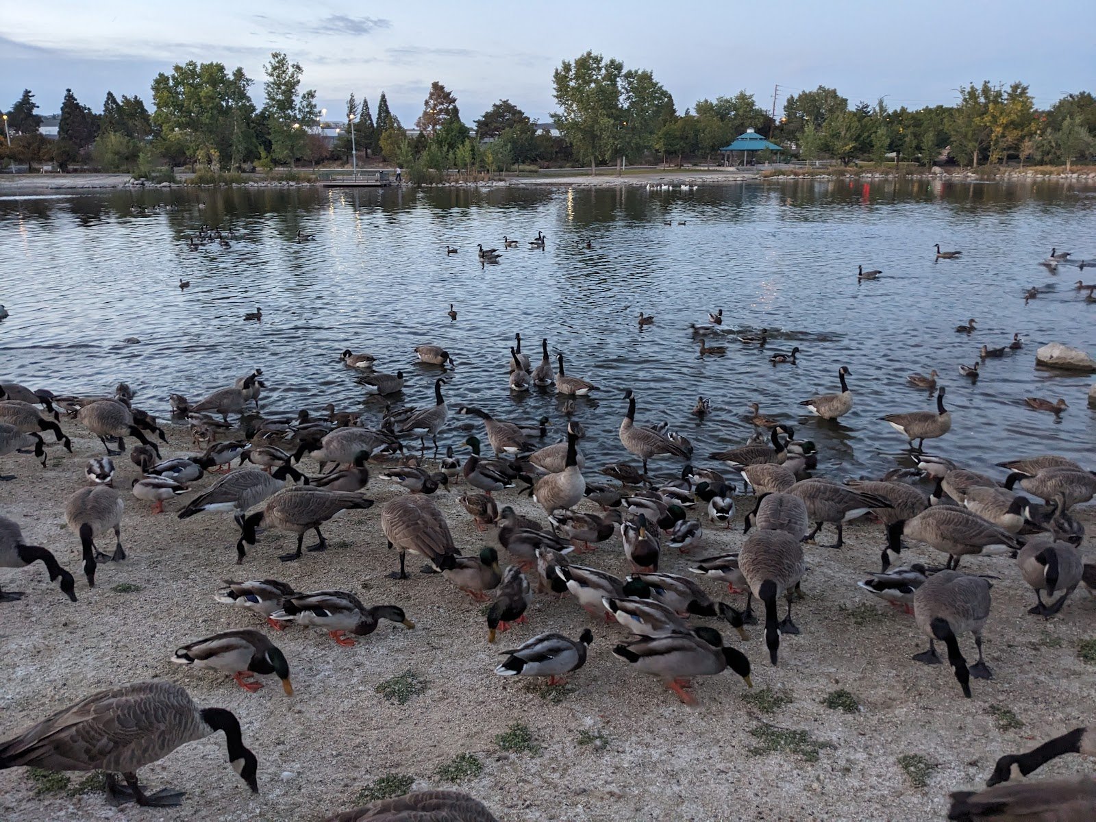Very sizeable park you can get a good walk ♂️ or run ♀️ ♀️. There’s lots of birds ⬛ mainly pigeons, ducks, and seagulls, but you can find other types. They have an expensive and fun playground for kids. Some restroom, and water fountains. Some low tier individuals hang out because of the amenities but it’s gotten better. Close to a lot of other stores, school and flea market. Plenty of parking.
