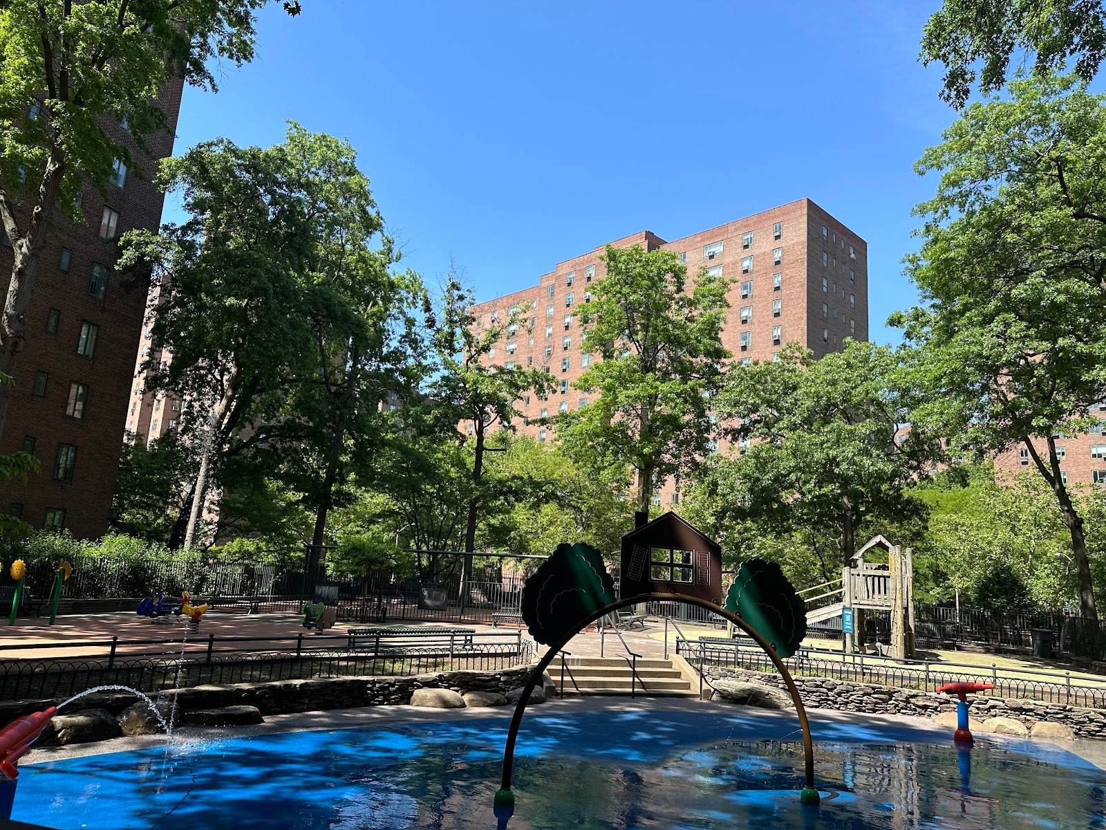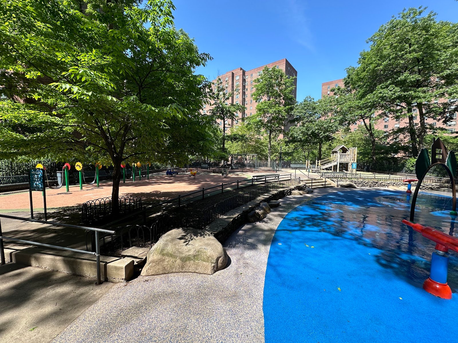 This is the park you want to go to during the hot summer mornings. Enough shade to hide from the sun, and all the water games your kiddo could want.