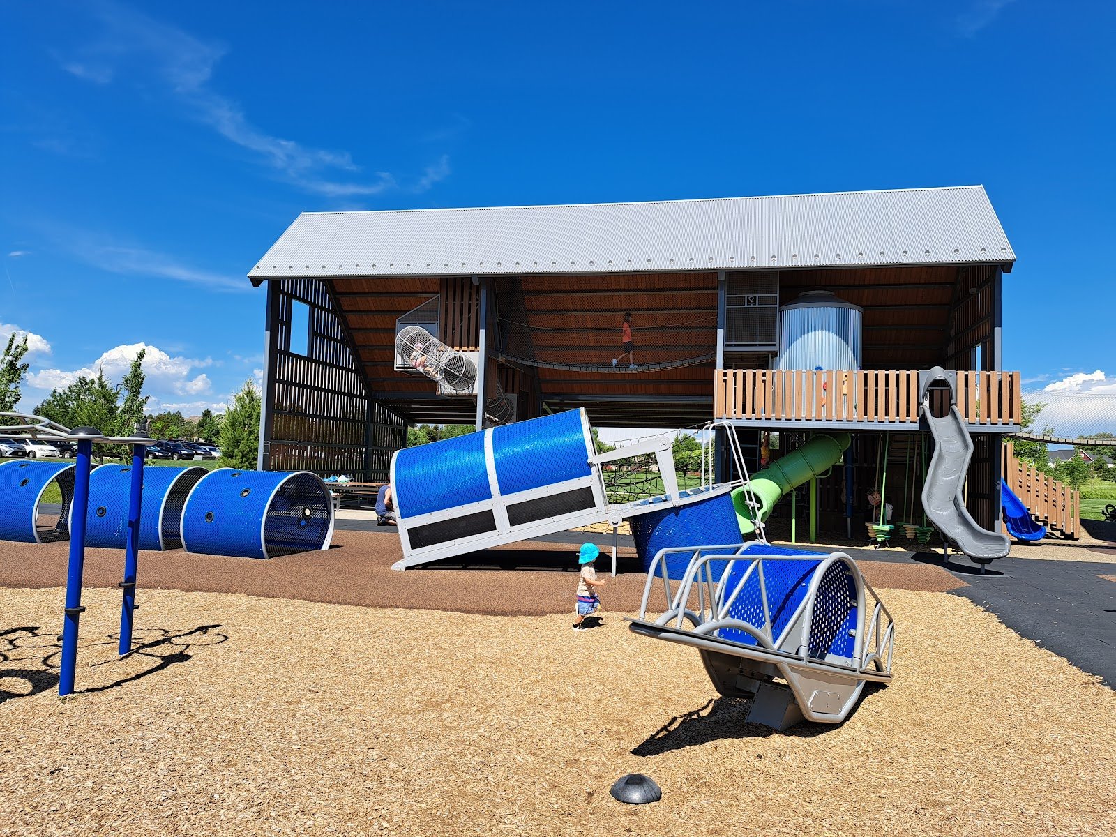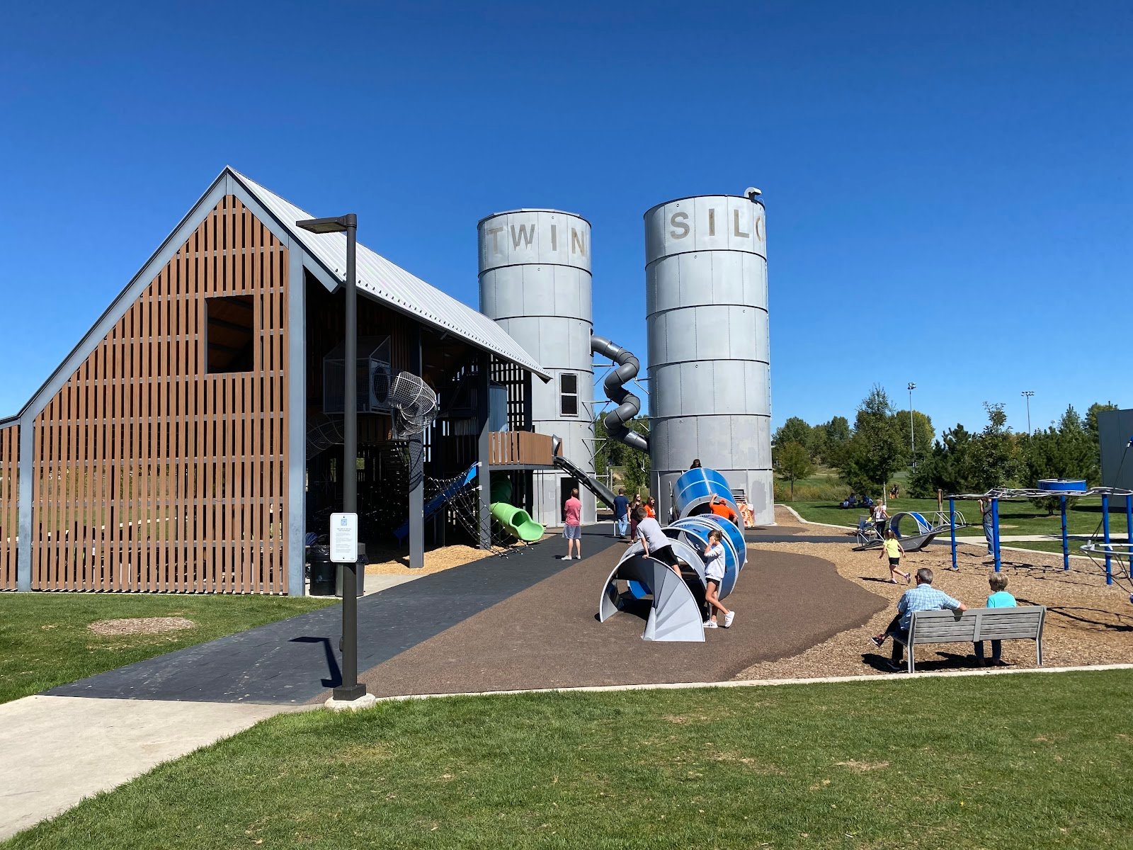 Preteens even enjoy this park as there are LOTS of climbing (up into the silo and all over), a zip line seat, suspension-type walkways, and more.