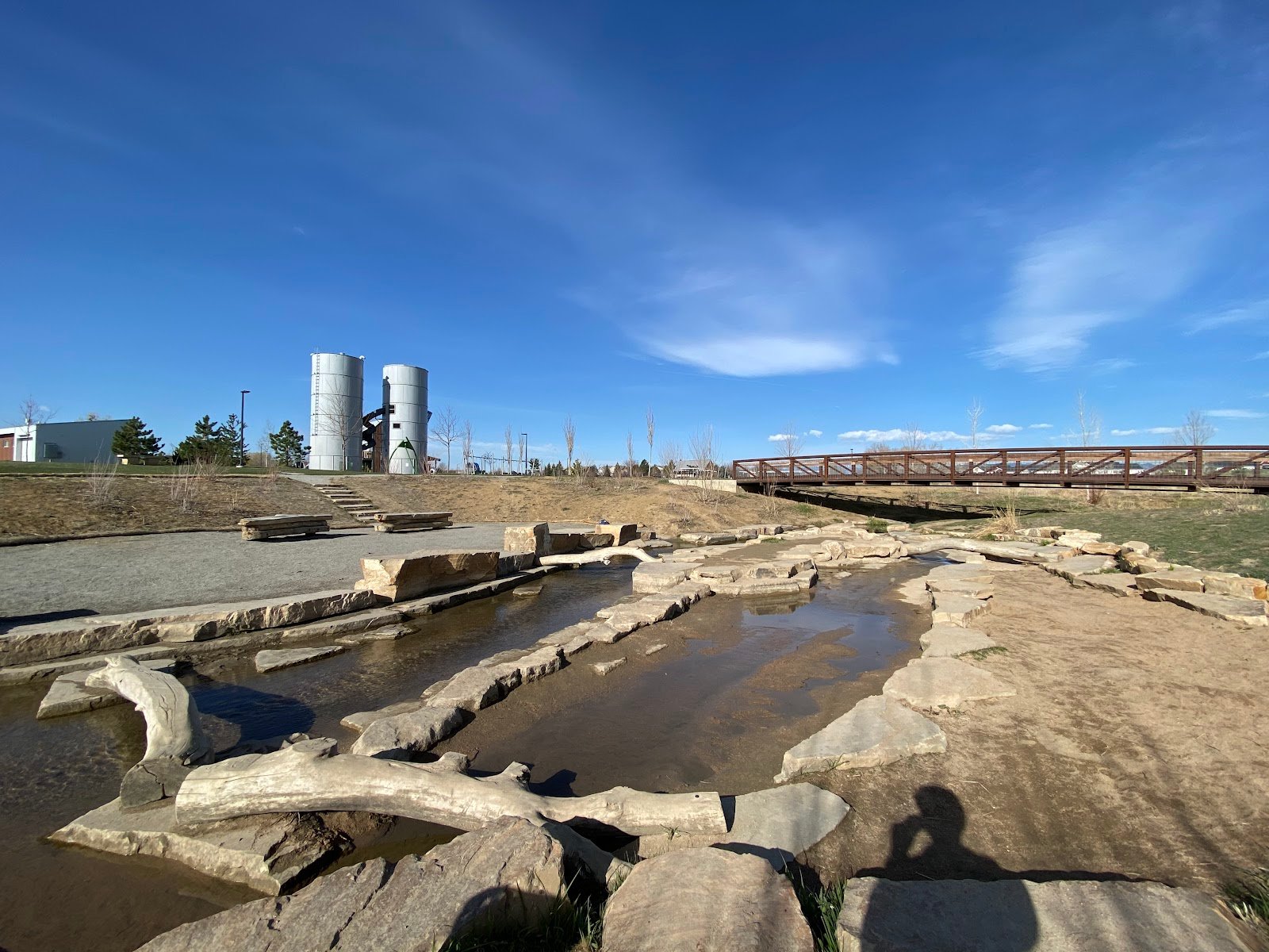 There is a creek with walking paths around it and right down to it. There are also bathrooms, though we haven’t used them so I cannot attest to anything on them.