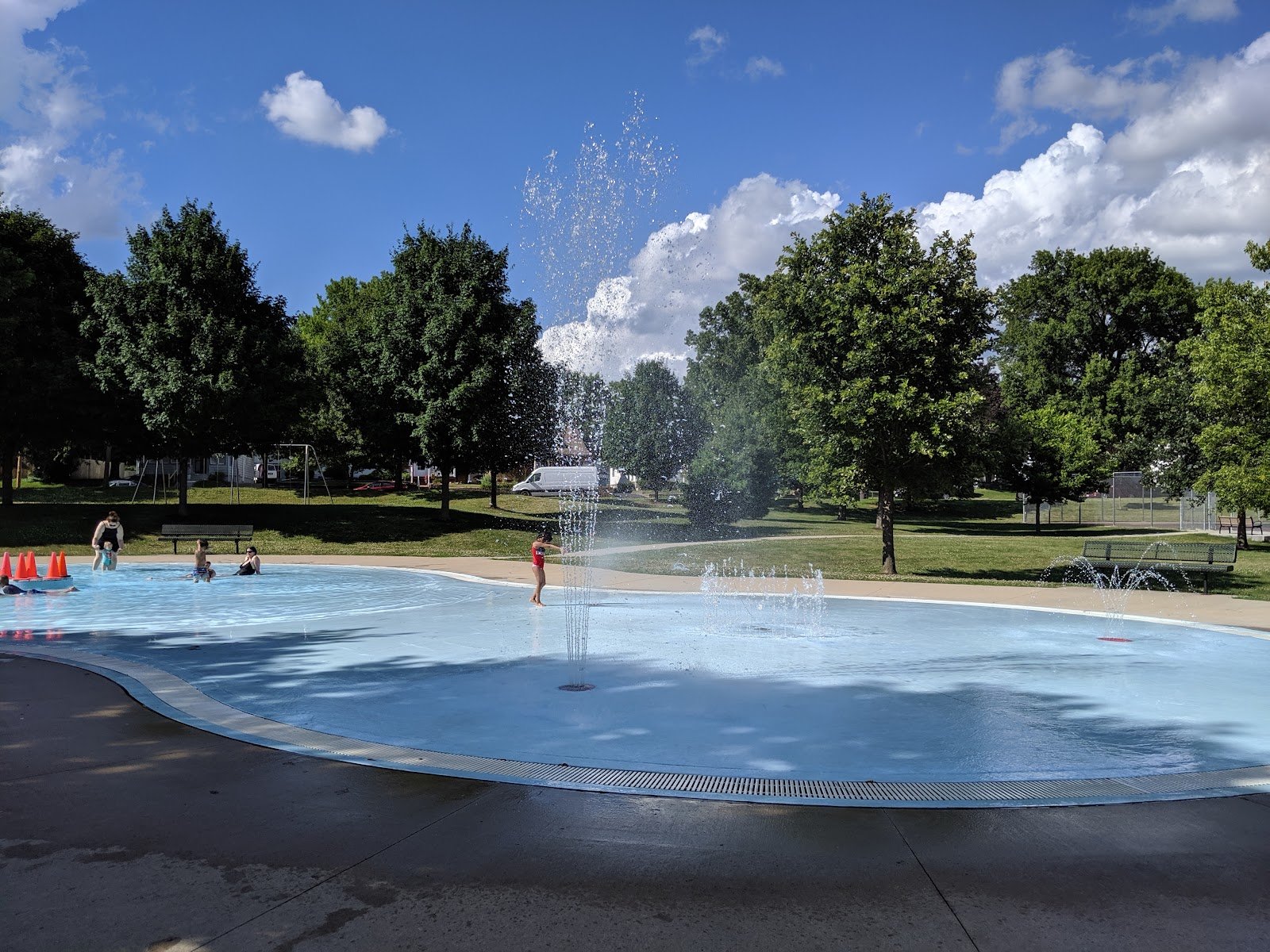 Beautiful small community park with playgrounds and walking paths. Great family friendly activities, no trash or graffiti. Street side parking large enough for any size rig or RV throught the park. Quick walk to marina and riverside connecting trails. I had full bars of Verizon 4G LTE Roaming.