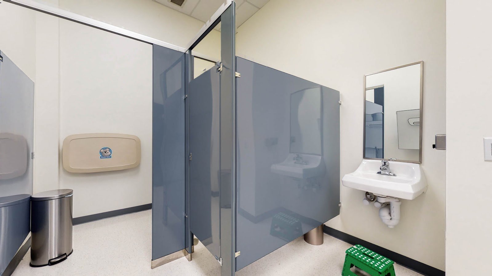 The women’s and men’s restrooms are wheel chair accessible with grab bars. The women’s restroom has an adult diaper change station.