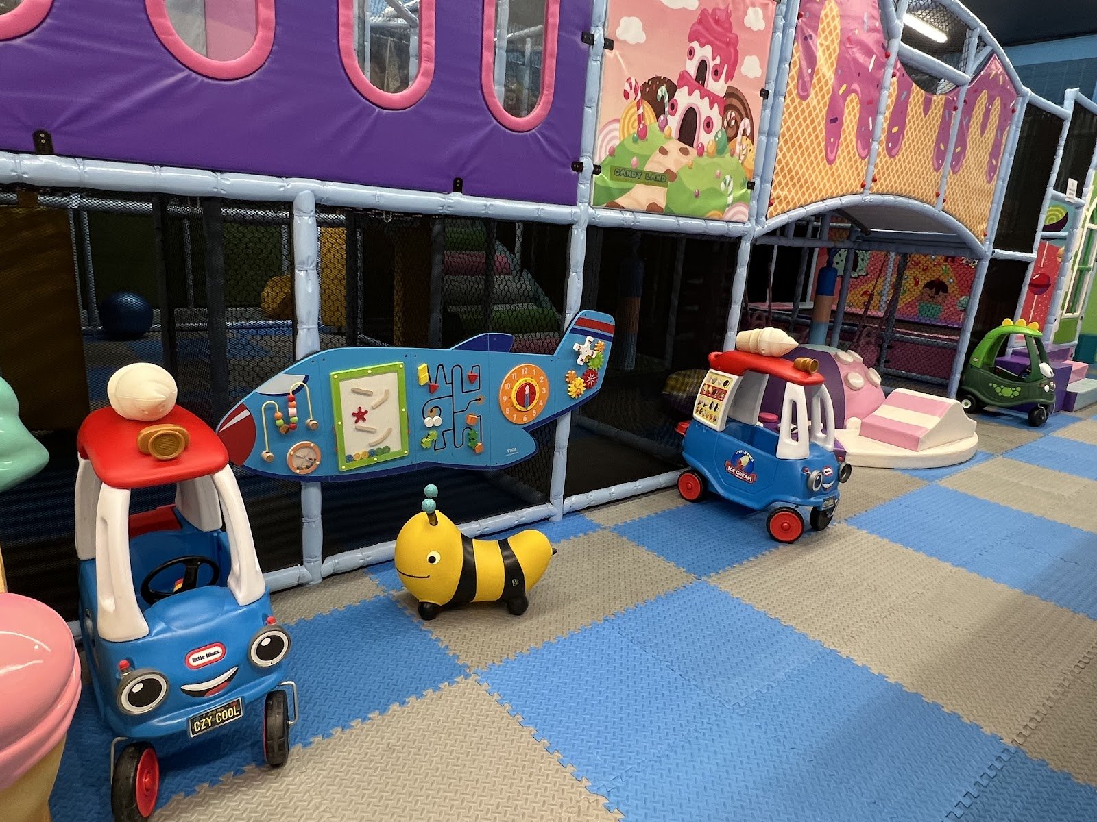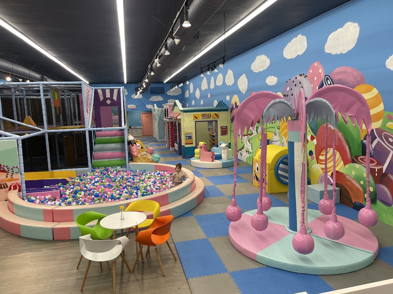 The cutest indoor playground! The theme is fun & bright. The staff is nice, it is extremely clean and has soo much neat stuff for the kids. It’s Toddler friendly, I was a little nervous taking mine in but she had a blast and there was so much for her to do. Will definitely be back again soon!