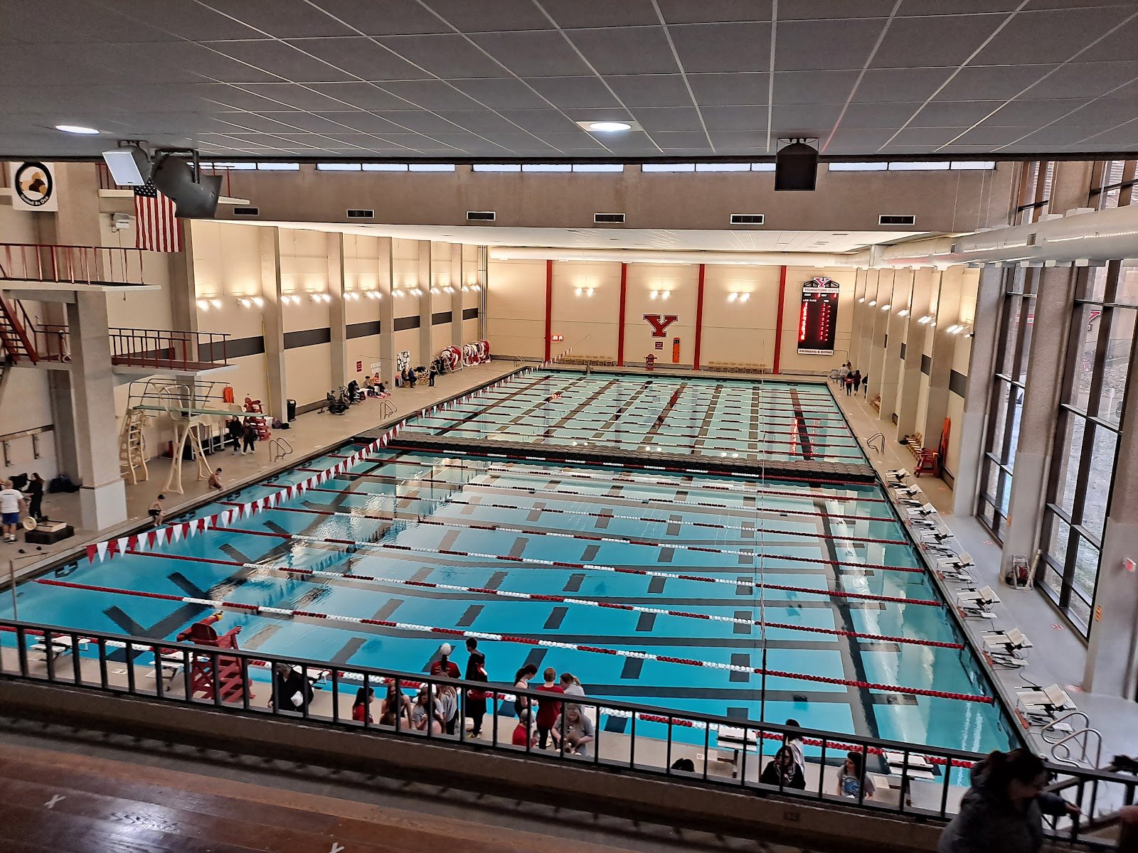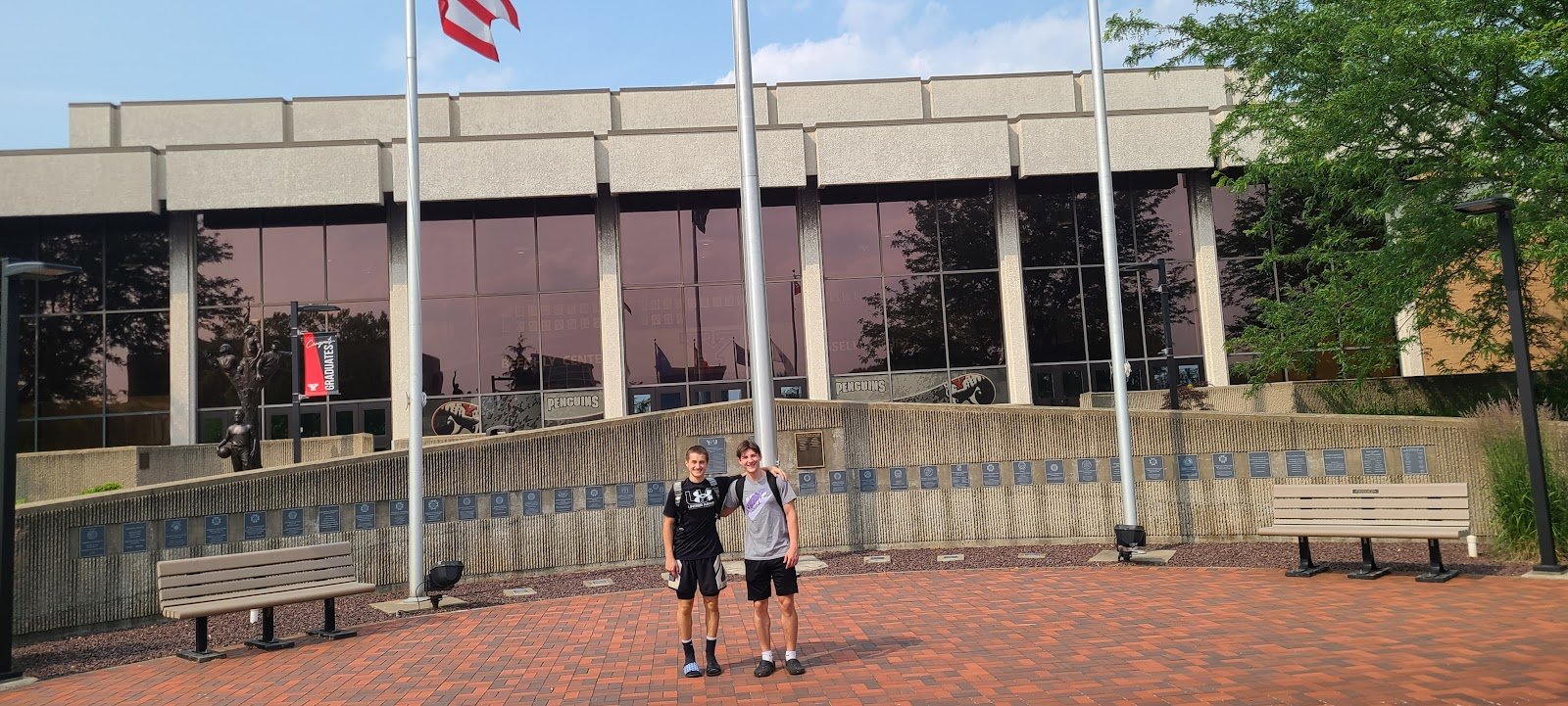 There’s a very large parking lot adjacent from Beeghly Center, near McDonald’s. The actual Center is indoors, has restrooms, and plenty of seating. You can take drinks or buy them there, your basics are available. Easy to get in and out of especially for anyone handicapped. Overall nice experience